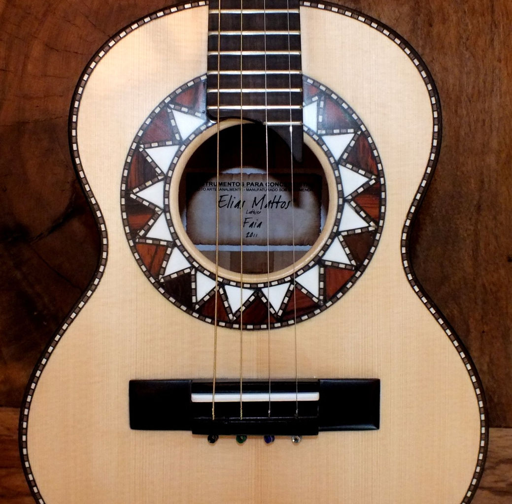 Esse instrumento tem fundo e laterais de jacarandá da Bahia, tampo de pinho europeu, braço e cabeça de cedro e escala de ébano. Os trastes devem ser de material bem resistente, não muito finos e as mecânicas independentes (uma para cada corda) e de pino fino. O traste zero - um facilitador na construção da escala, aos poucos vai deixando de ser usado. Segue abaixo um desenho explicativo das partes do instrumento com as denominações mais usadas. A estrutura do tampo normalmente apresenta três leques harmônicos de sustentação, mas em muitos instrumentos feitos exclusivamente para acompanhamento, os leques são suprimidos. Estes instrumentos, que apresentam normalmente a caixa de menor altura e quase não sustentam um som, são conhecidos como modelo Canhoto.
